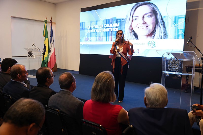 O Governo do Estado concedeu a Comenda Jerônymo Monteiro, Ordem Grã-Cruz, à bióloga e pesquisadora Tatiana Sampaio, na tarde desta quinta-feira (26), em cerimônia realizada no Palácio Anchieta, em Vitória. A comenda, maior honraria concedida pelo Governo, foi entregue pelo governador Renato Casagrande. Tatiana Sampaio coordena o projeto que desenvolve a polilaminina e se tornou o principal nome ligado ao avanço das pesquisas sobre a substância no Brasil.